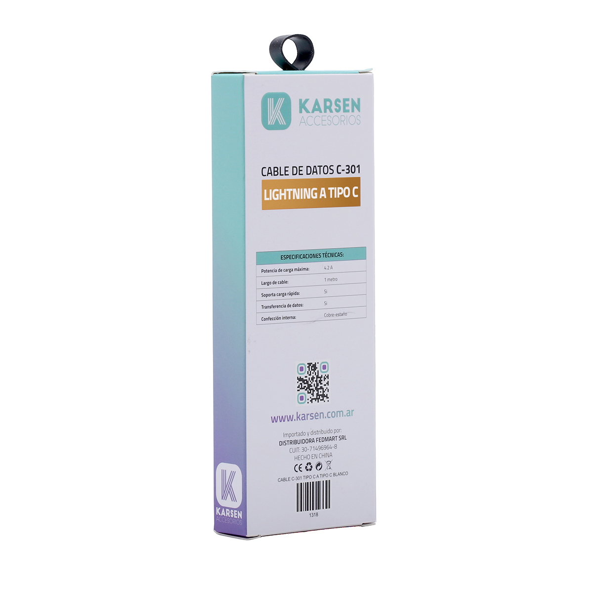 CABLE KARSEN C-301 DE LIGHTNING A TIPO C 1MT
