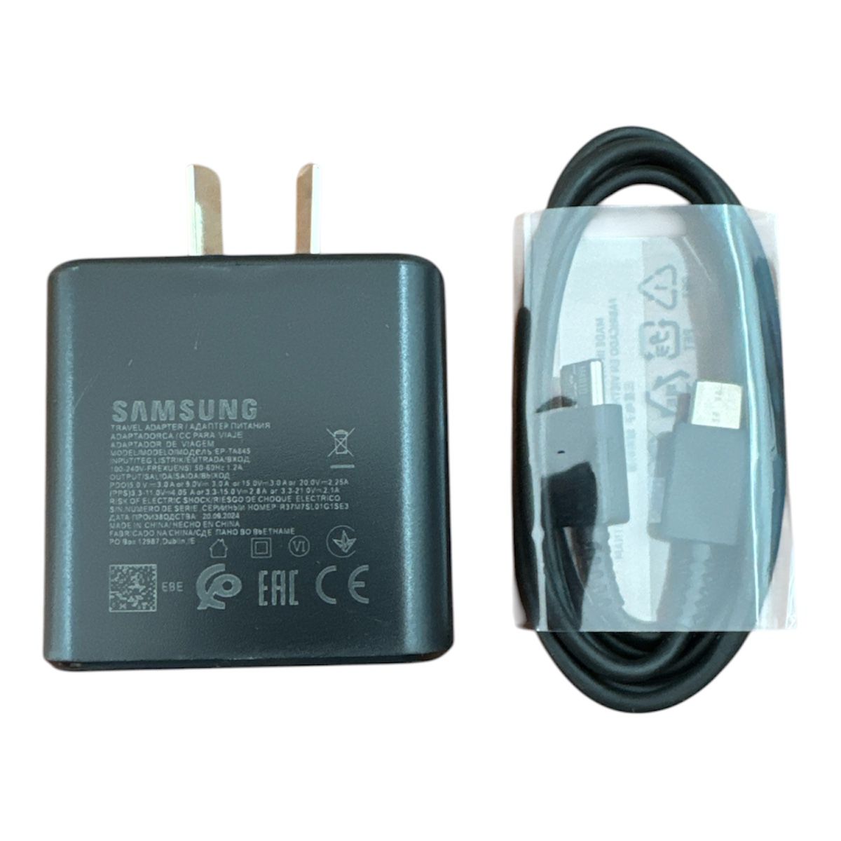 CARGADOR COMPLETO SAMSUNG AAA 45W CABLE TIPO C A C NEG/BCO