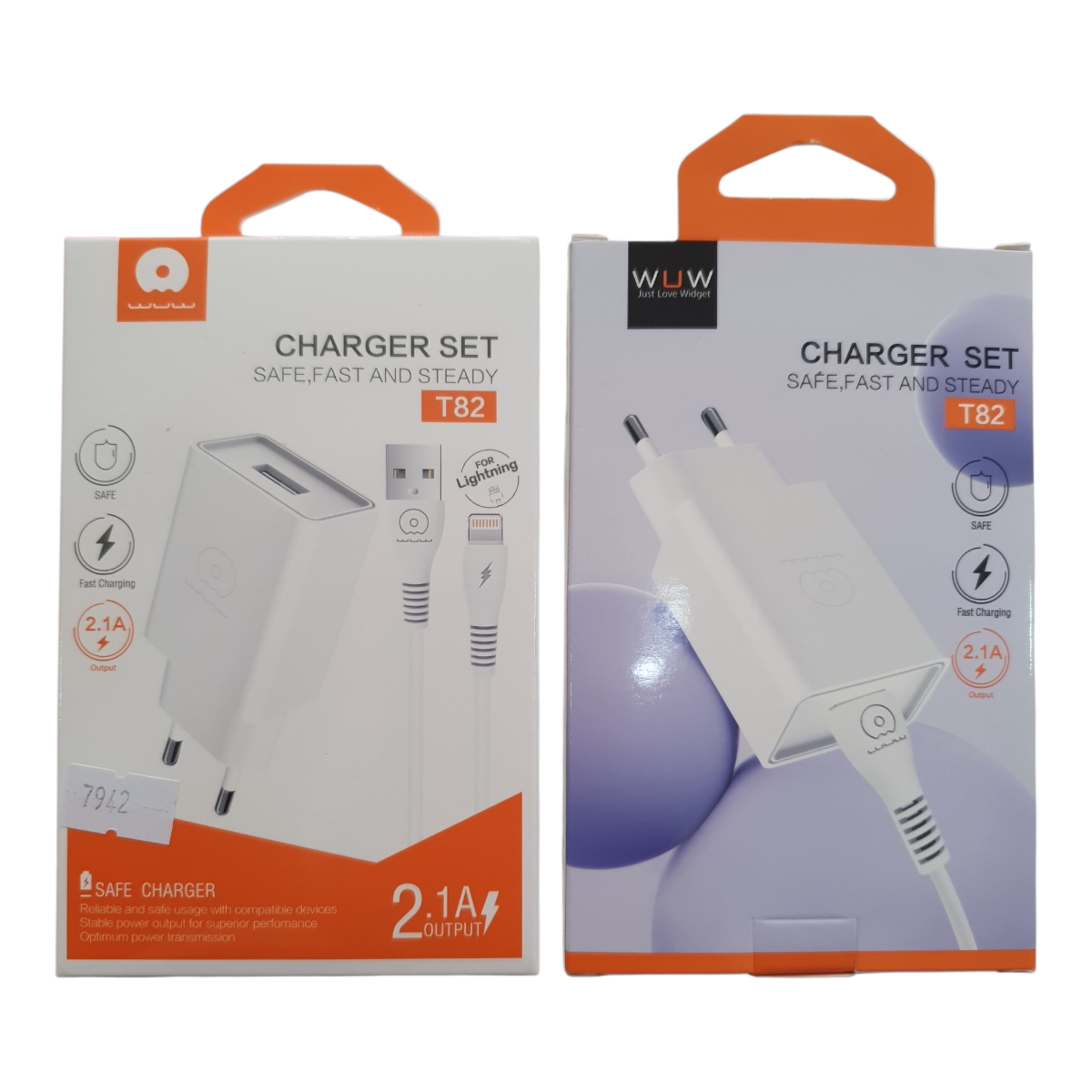 CARGADOR COMPLETO WUW T82 2,1A CON CABLE USB A TIPO C BLANCO