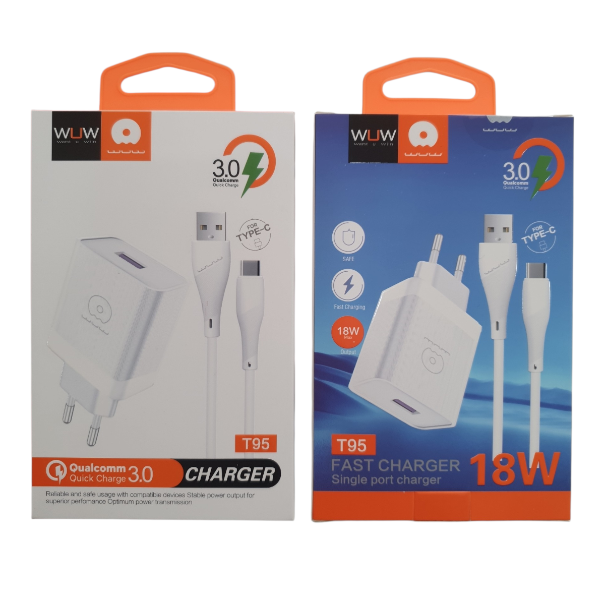 CARGADOR COMPLETO WUW T95 18W CON CABLE USB A TIPO C BLANCO