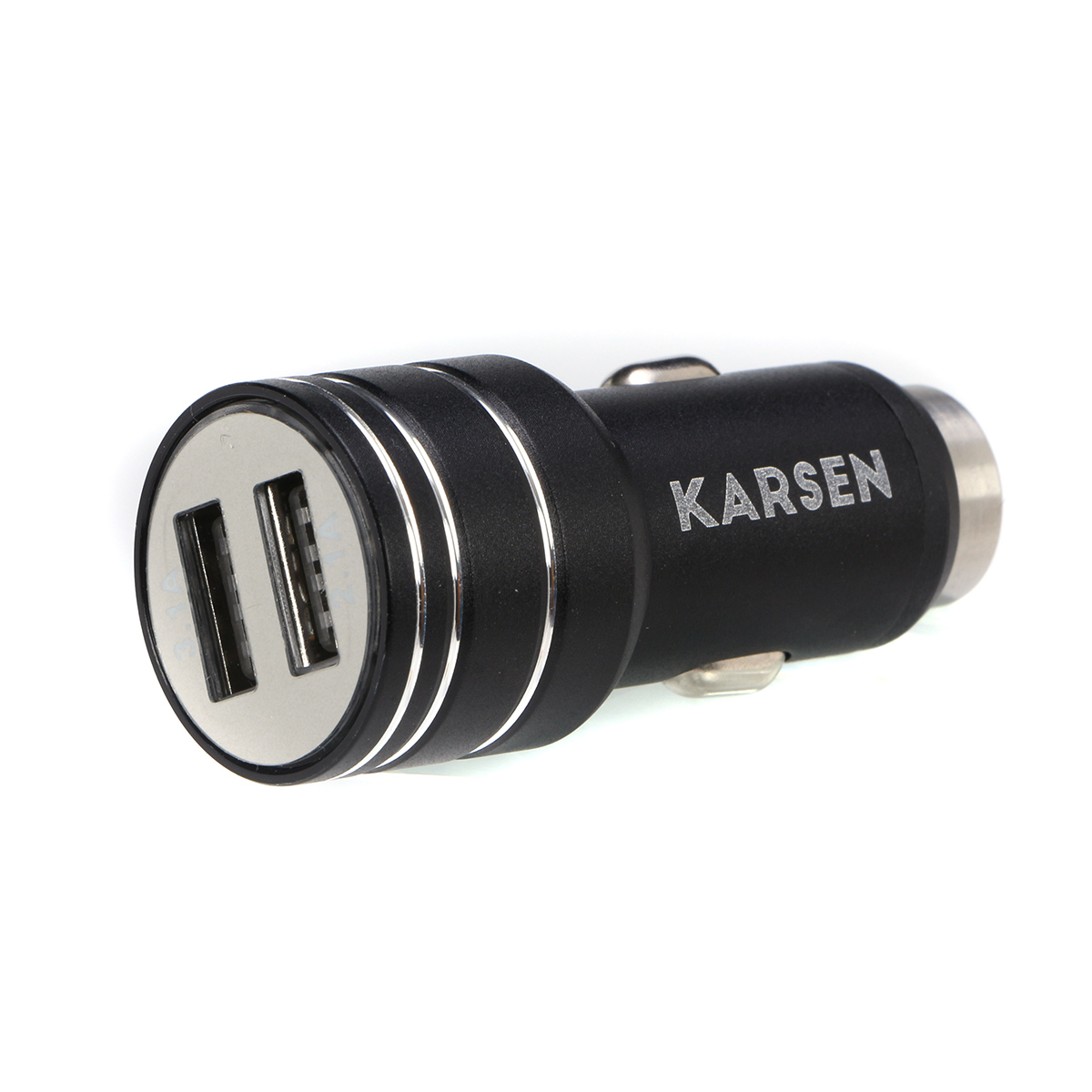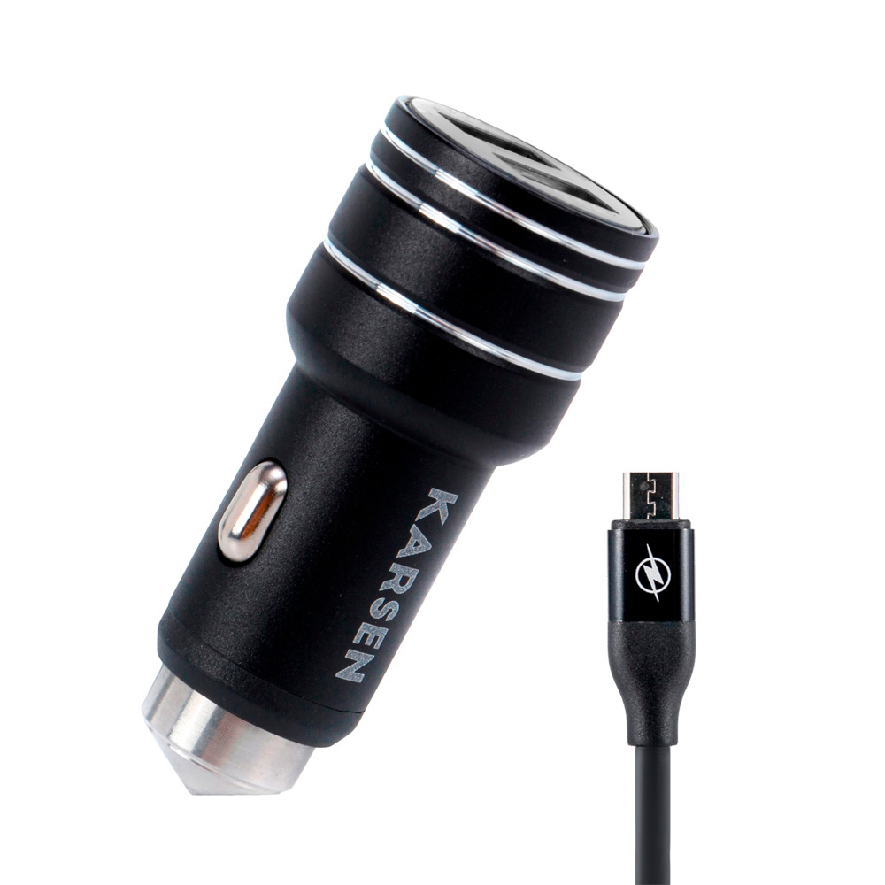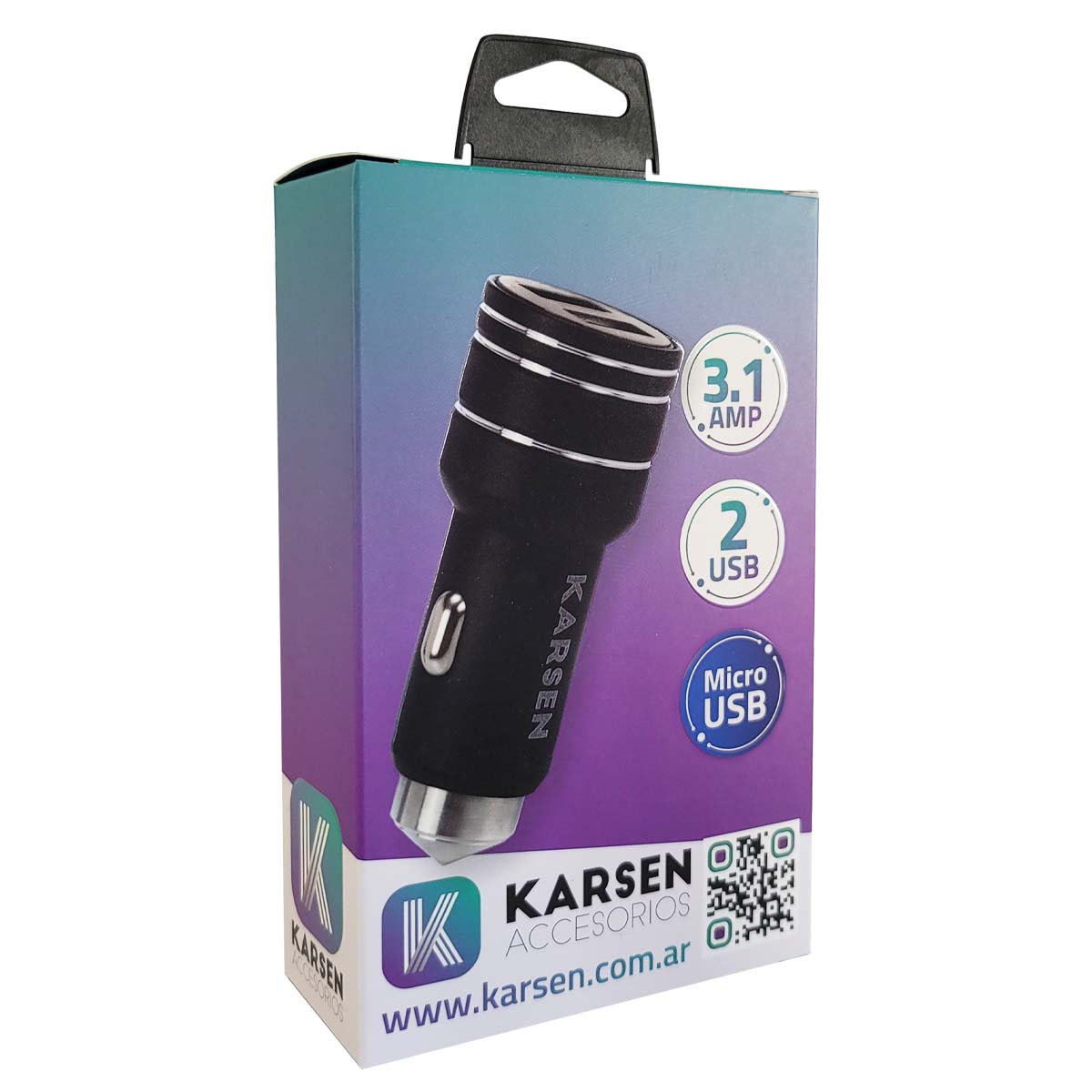 CARGADOR PARA AUTO KARSEN ESTRUENDO, MICRO USB, 3.1A, 12 Y 24V, NEGRO