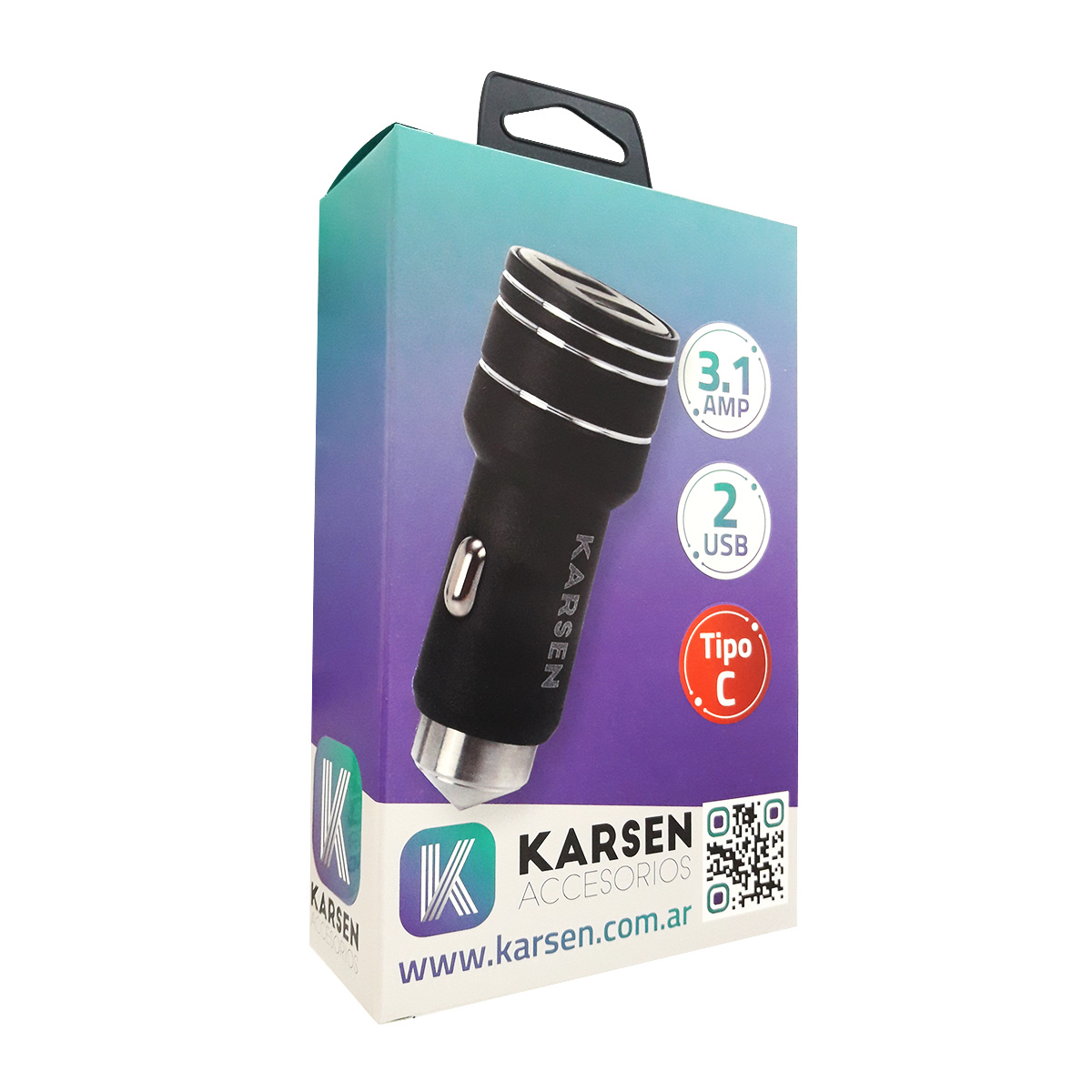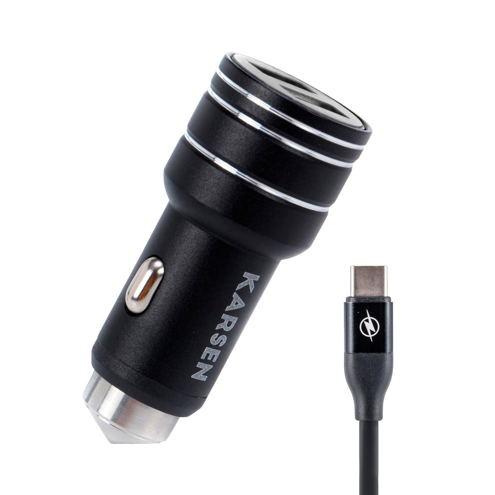 CARGADOR PARA AUTO KARSEN ESTRUENDO, TIPO C, 3.1A, 12 Y 24V, NEGRO