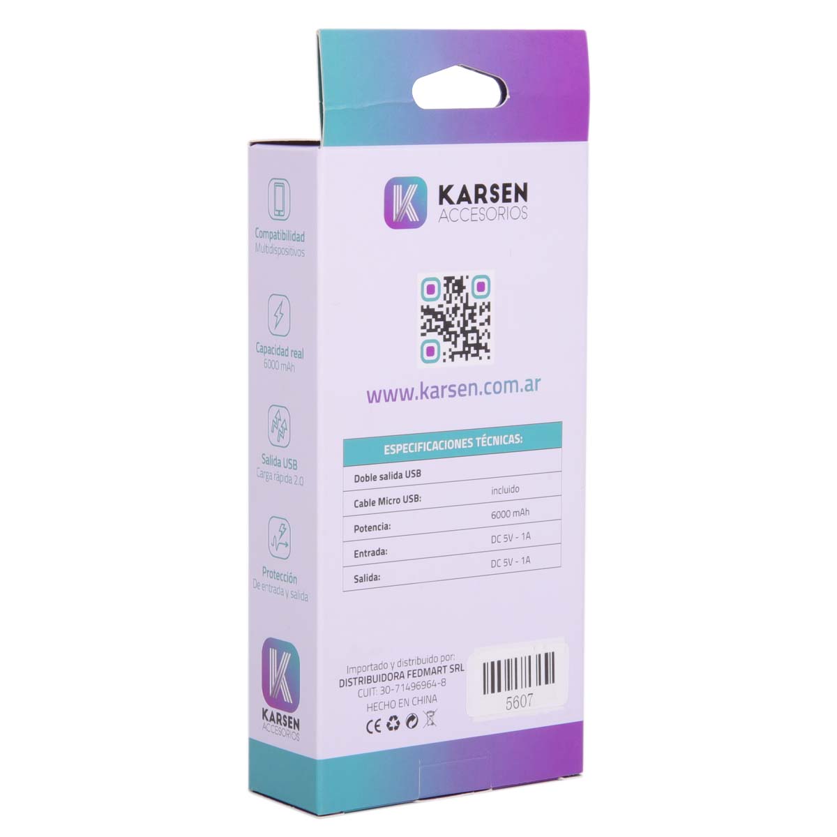 POWER BANK KARSEN BULL 6000 MAH MICRO USB BLANCO